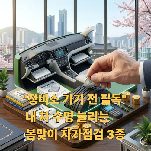 🚗 Spring Car Maintenance: Cabin Filter Replacement & Tire Check 📋 봄철 차량 점검 핵심 요약🌬️ 에어컨 필터 (캐빈 필터) 교체겨울철 묵은 먼지와 곰팡이를 제거하고 황사·미세먼지에 대비하여 헤파(HEPA) 등급 필터로 자가 교체하는 것이 경제적입니다.🛞 타이어 공기압 및 마모도 체크겨울철 낮아졌던 공기압을 적정 수준으로 재조정하고, 동전 하나로 간단하게 타이어 교체 시기를 파악할 수 있습니다.🧼 와이퍼 및 소모품 보충봄비와 꽃가루로 인한 시야 방해를 막기 위해 와이퍼 고무 상태를 점검하고 에탄올 워셔액을 가득 채워야 합니다.Safety Info - Link 1🛠️ 한국교통안전공단 (자동차 검사 및 관리 안내)내 차의 정기 검사일 확인과 차종별..
