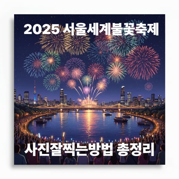 🟢 1. 서울세계불꽃축제, 언제 어디서 열리나요?서울세계불꽃축제는 2025년 9월 27일(토) 13:00 ~ 21:00이며 이번대회 참가국은 이탈리아/캐나다/한국입니다.골든티켓 이벤트 9월 16일(화)까지 참여 가능하니 최고의 명당을 잡을 기회와 골든티켓 이벤트로 참여해 보세요.한강 여의도 일대에서 열리는 대규모 행사로 국내외 불꽃연출팀이 참여해 화려한 불꽃쇼를 선보입니다.특히 한강을 배경으로 펼쳐지는 불꽃은 사진으로 남기기에 최고의 장면을 만들어 줍니다.외국인 관광객에게도 이미 잘 알려진 이 축제는서울의 야경과 어우러진 불꽃을 찍을 수 있는 절호의 기회입니다.다만 행사 당일에는 인파가 몰리기 때문에 사전 준비가 필요합니다.🟢 2. 불꽃사진 촬영에 좋은 명당 위치✅ 여의도 한강공원가장 가까이에서 불꽃..